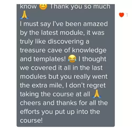 You will have lifetime access to the video modules and course material so there’s no worries if you want to go slower.